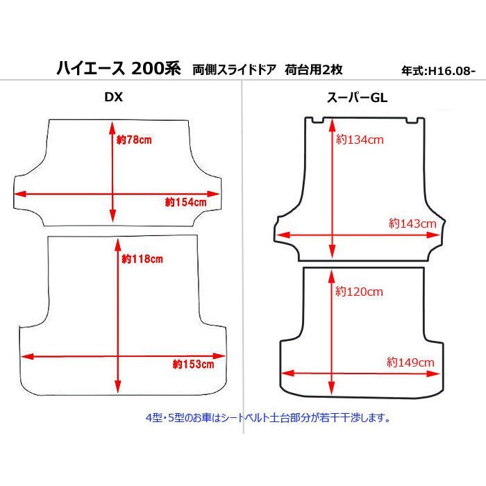 【P10倍 (8/20)限定】ハイエース 200系 DX標準 ラグマット セカンド1枚とセカンド下1枚と荷台用2枚、標準幅、両側スライドドア用【高品質で安売りに挑戦】【当日発送可】
