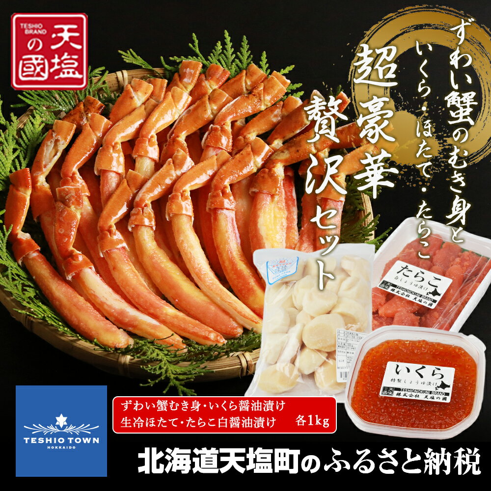 【ふるさと納税】ズワイガニ むき身 いくら 鮭 国産 小分け ホタテ 貝柱 たらこ 海鮮 お楽しみセット ( ずわい蟹のむき身1kg・ほたて1kg・いくら1kg・たらこ1kg )天塩の國 ふるさと納税 北海道