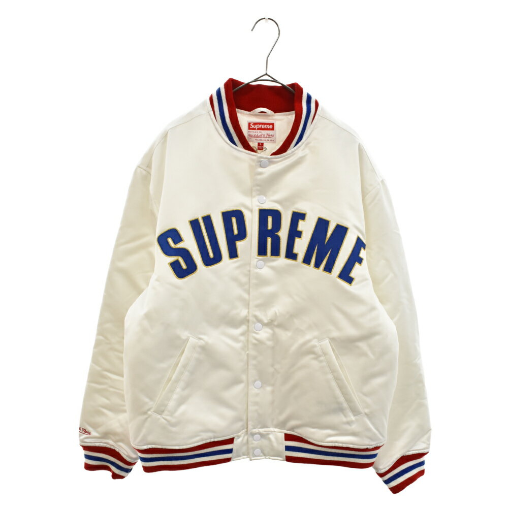 SUPREME(シュプリーム)21SS×Mitchell & NessSatin Varsity Jacket×ミッチェルアンドネス サテンバーシティジャケット ロゴ刺繍サテンスタジアムジャンパー ブルゾン【中古】【程度A】【カラーホワイト】【オンライン限定商品】