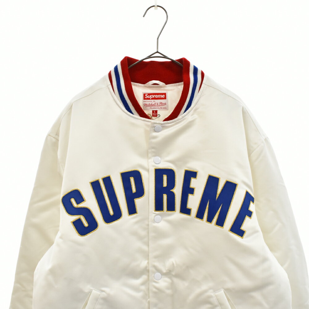 SUPREME(シュプリーム)21SS×Mitchell & NessSatin Varsity Jacket×ミッチェルアンドネス サテンバーシティジャケット ロゴ刺繍サテンスタジアムジャンパー ブルゾン【中古】【程度A】【カラーホワイト】【オンライン限定商品】