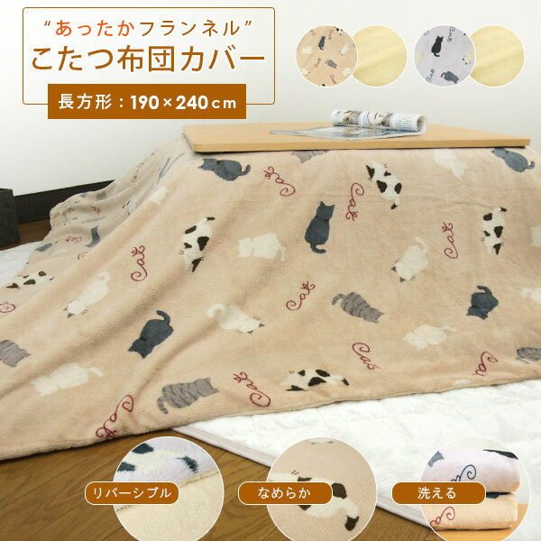こたつ布団カバー 長方形 190×240cm ねこ柄 フランネル こたつカバー こたつ掛け布団カバー 洗える こたつふとんカバー コタツ布団カバー こたつ毛布 上掛け あったか 185×235 こたつ布団対応 ナチュラル 北欧 おしゃれ かわいい ネコ CAT リバーシブル 無地 【送料無料】 詳しく見る