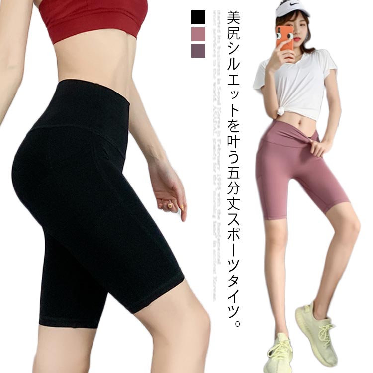 レギンス レディース ヨガパンツ ヨガウエア スポーツウエア 美脚レギンス 美尻レギンス ハイウエスト ポケット付き 五分丈パンツ ハーフパンツ ショートパンツ スパッツ ヨガスパッツ ストレッチ 伸縮性 レギパン ボトムス 夏新作