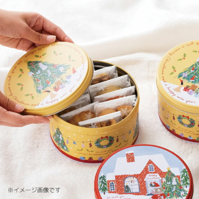 商品説明クリスマスデザインのブリキ製丸型ギフト缶す。