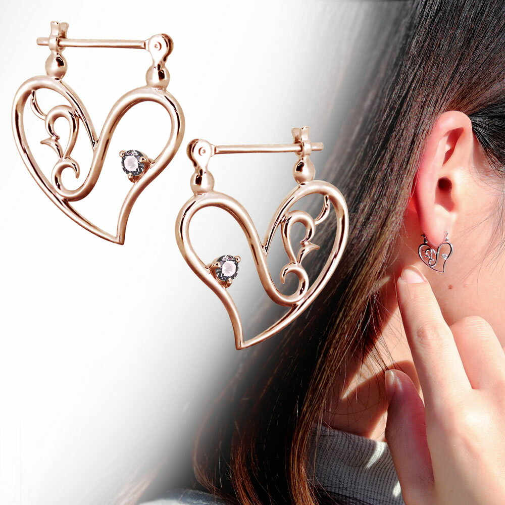 ピアス レディース フープ ハート 誕生石 4月 ダイヤモンド クロッシングピアス