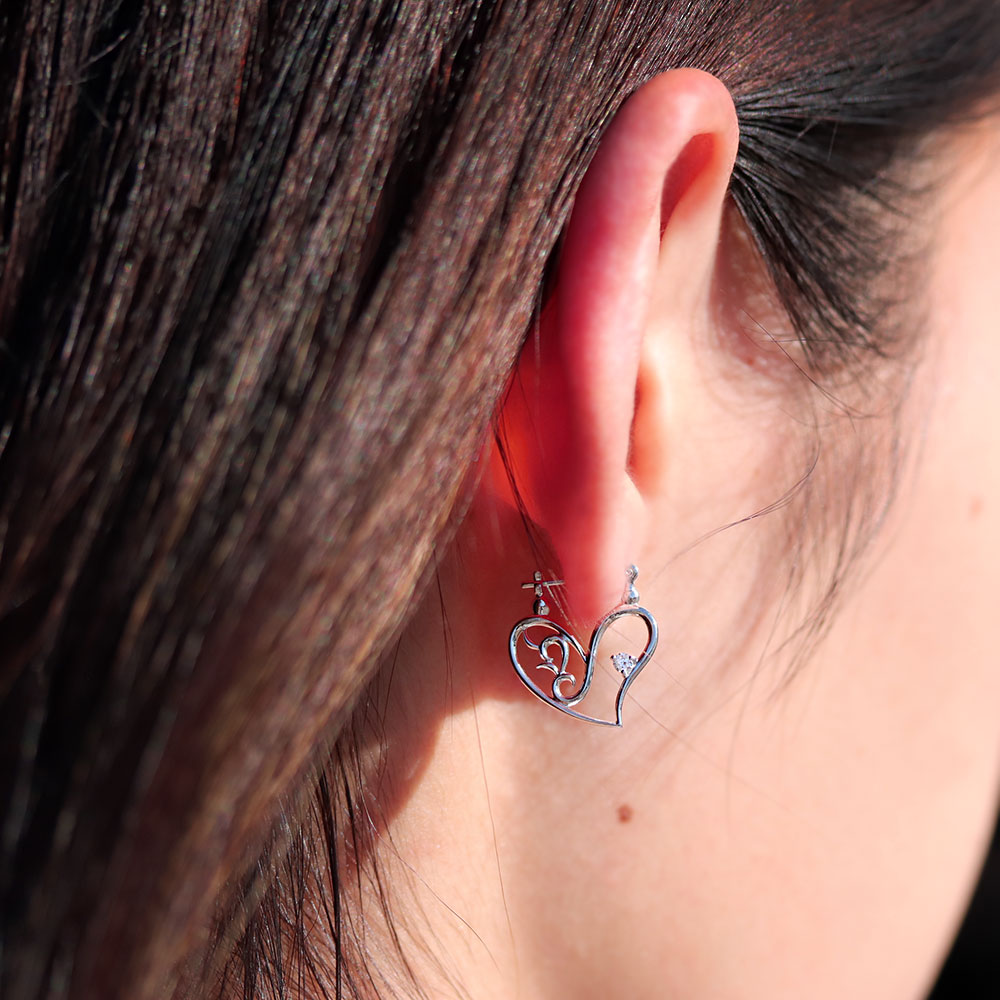 繊細な唐草で描いたハートが可愛い クロッシングタイプのピアスになっています。