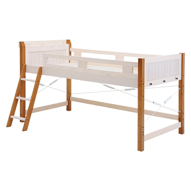 【商品について】■商品サイズ(外寸)(約)幅106×奥行210×高さ122×床面高82.5cm■補足説明・床面内寸:(約)幅98×長さ197cm ・宮棚、2口コンセント付 ・組立式■成分材質主材:パイン材■その他この商品は2梱包でお届けします。