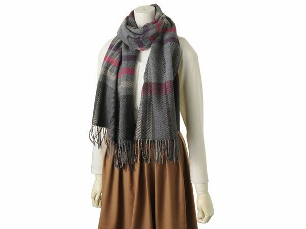 訳あり小さなほつれあり レノマ renoma マフラー 大判ストール メンズ レディース GZ240 B グレー チェック柄 アクリル マフラー 新品