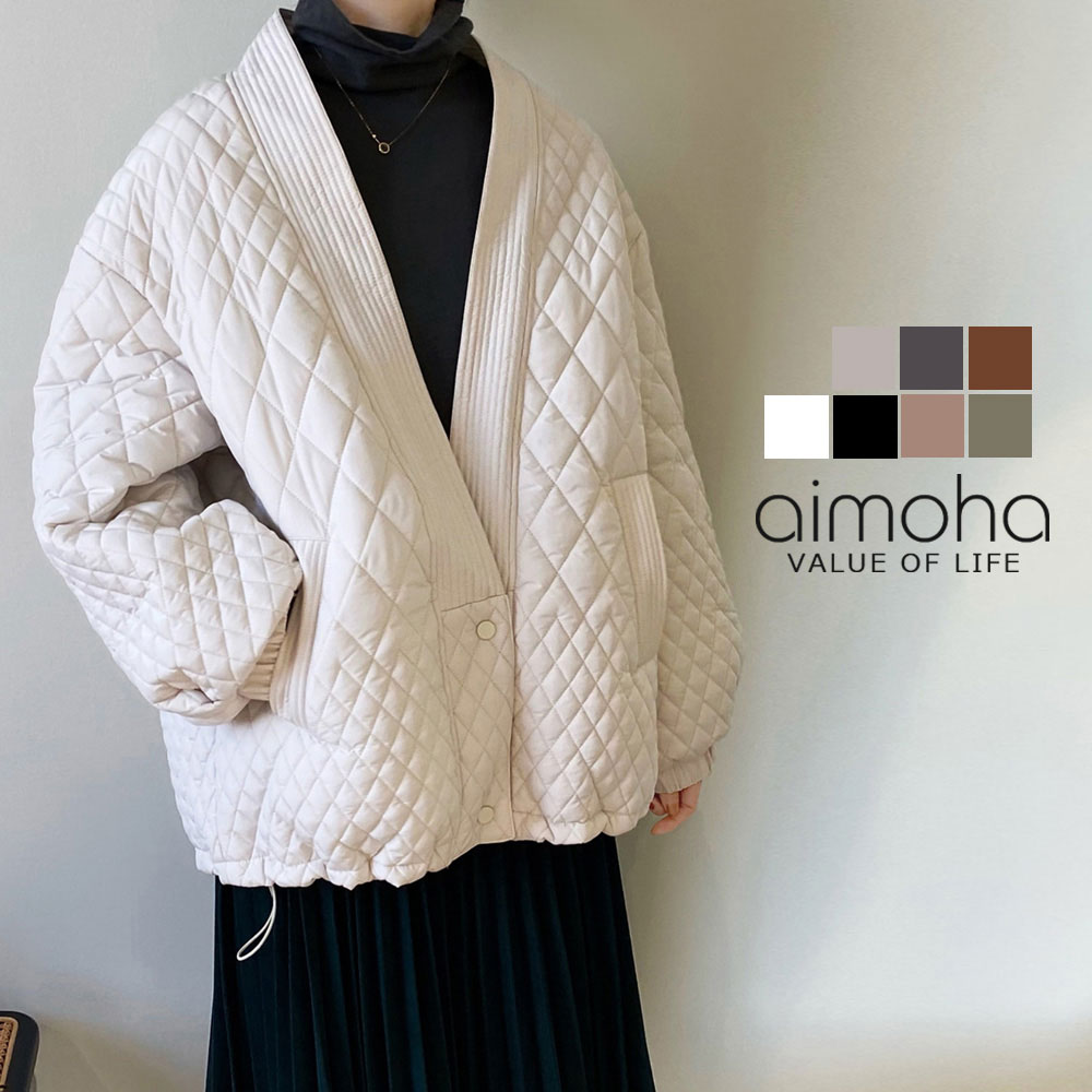 【クーポンセール20%OFF】キルティングジャケット レディース 中綿 あたたか キルティング ブルゾン アウター 秋 冬 春 ノーカラー Vネック ブルゾン あったか 暖か 韓国 ライク オルチャン 綺麗め 大人 【キルディング生地が可愛い中綿アウター】