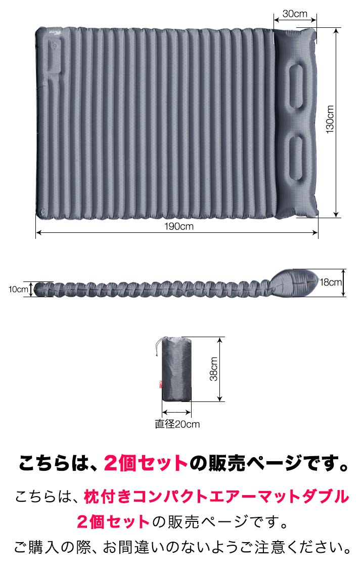 ポンプ搭載のエアーマット アウトドアにオススメな枕付きエアーべッドです。