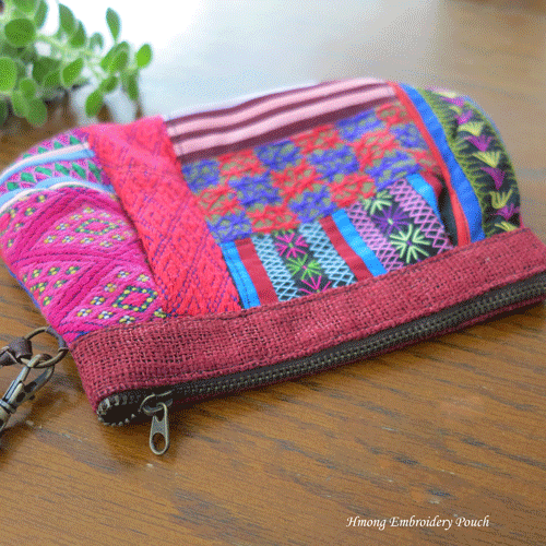 新着NEW☆モン族 ポーチ モン族伝統の刺繍ポーチ少数民族 刺繍 アジアン雑貨 アジアン ポーチ 小物入れ モン族刺繍 小物入れ ポーチ 民族 両面刺繍 タイ王宮