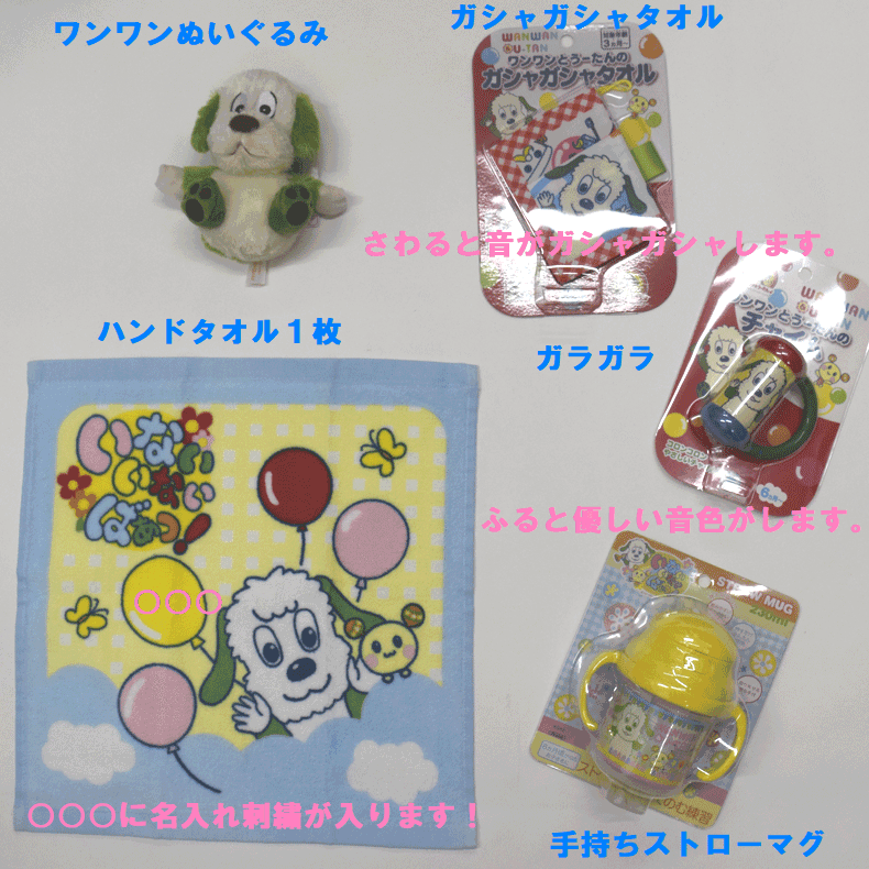 【おむつケーキのセット内容】 ○ワンワンの可愛いぬいぐるみ1つ ○ガシャガシャ(触るとガシャガシャ音が鳴ります。