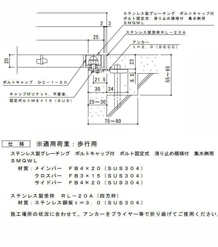 カネソウ SUSグレーチング 落葉助っ人バスケット付ボルトキャップ付ボルト固定式プレーンタイプ集水桝用 (注番:SMWL-DC-5520-P=22枠付+DK-450-S) すきま18mm 寸法:500×500×20 「法人・事業所限定,直送元」【代引き不可】