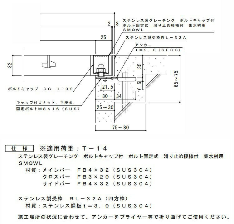 カネソウ SUSグレーチング 落葉助っ人バスケット付ボルトキャップ付ボルト固定式滑り止め模様付集水桝用 (注番:SMQWL-DC-3320-P=13枠付+DK-250S)「法人・事業所限定,直送元」【代引き不可】