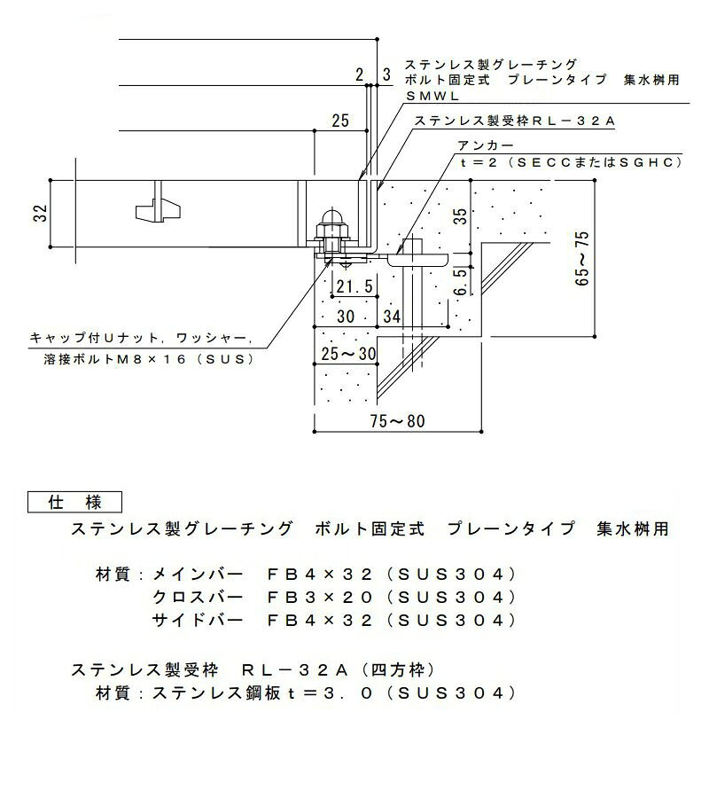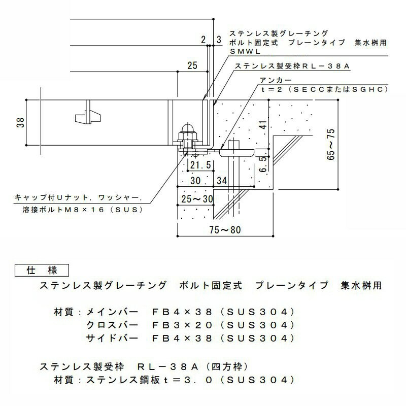 カネソウ SUSグレーチング 落葉助っ人バスケット付ボルトキャップ付ボルト固定式プレーンタイプ集水桝用 (注番:SMWL-DC-3538A-P=30枠付+DK-300-S) すきま26mm 寸法:350×350×38 「法人・事業所限定,直送元」【代引き不可】