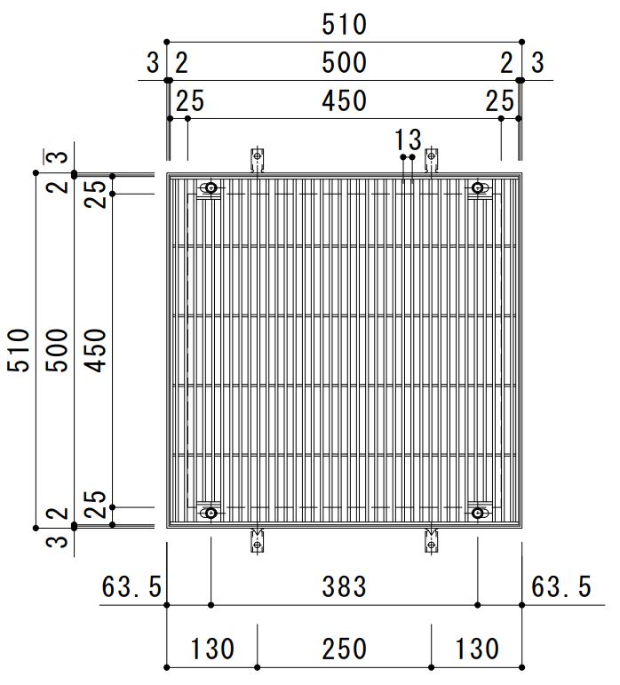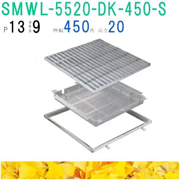 カネソウ SUSグレーチング 落葉助っ人バスケット付ボルトキャップ付ボルト固定式プレーンタイプ集水桝用 (注番:SMWL-DC-5520-P=13枠付+DK-450-S) すきま9mm 寸法:500×500×20 「法人・事業所限定,直送元」【代引き不可】
